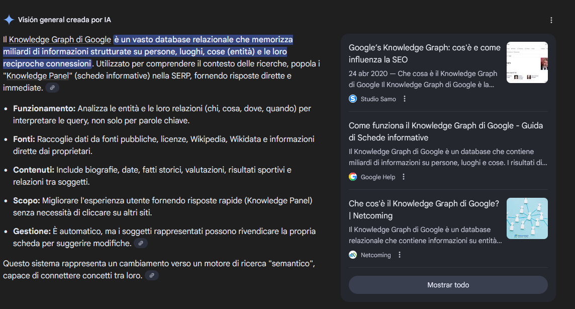 I risultati non sono più un elenco ordinato in base alla densità delle parole chiave. Ora vediamo snippet contestuali, risultati arricchiti e persino risposte generate dall’intelligenza artificiale (SGE). La ricerca è diventata conversazionale, semantica e orientata allo scopo.